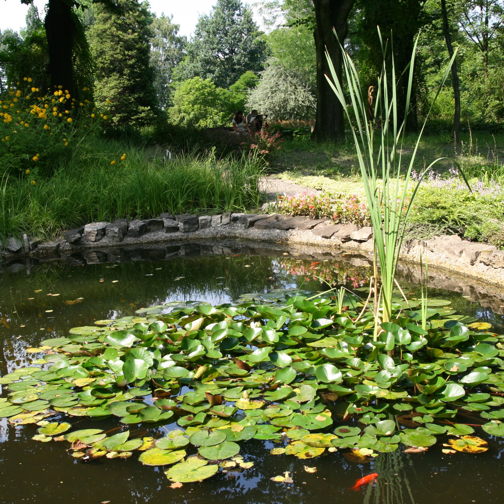 - Część botaniczną – utrzymaną w geometrycznym stylu ogrodów francuskich (regularny, kwaterowy układ alejek).