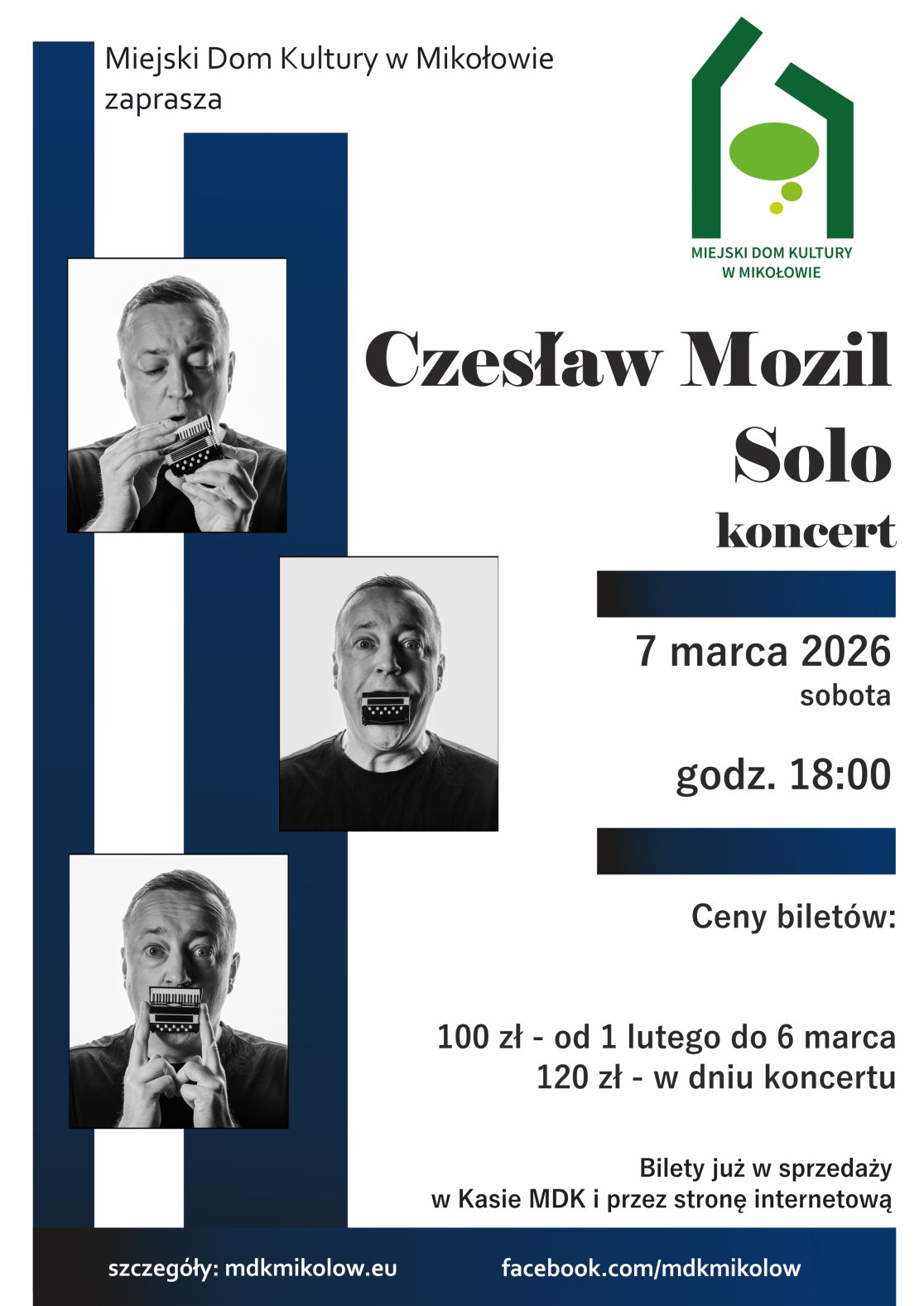 7 marca o godz. 18.00 zapraszamy do MDK na koncert Czesława Mozila.